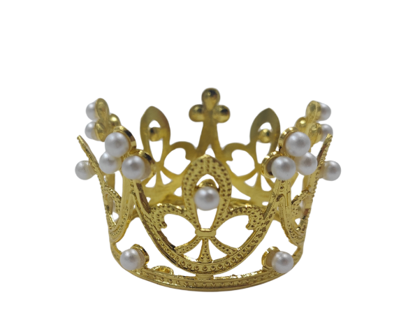 Corona decorativa en color oro con detalles de perlas que añade elegancia y sofisticación a cualquier arreglo floral. Perfecta para complementar ramos de rosas o incorporar en proyectos creativos y manualidades. Su diseño versátil permite adaptarse a diferentes estilos de decoración, desde eventos especiales hasta regalos personalizados.