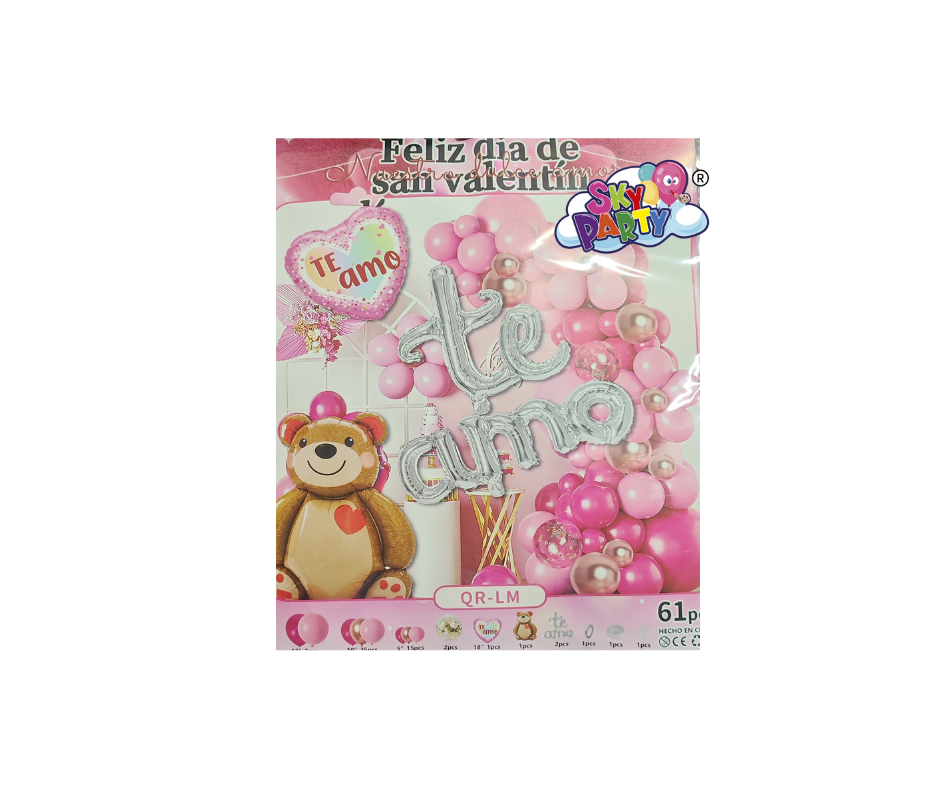 Expresa tu amor de manera espectacular con este Mega Kit Decorativo Te Amo.INCLUYE: 2 pzs 12" ROSA Y FIUSHA, 35 PZS ROSA, FIUSHA,CHROME 10" 15 PZS ROSA, FIUSHA,CHROME 5" 2 PZS LATEX TRANSPARENTE, 1 GLOBO FOIL CORAZON, 1 GLOBO FOIL OSO, 1 LETRERO TE AMO CURSIVO, 1 GUIA, 1 CURLI, 1 PUNTOS FRIOS. Perfecto para crear un ambiente romántico en aniversarios, propuestas de matrimonio o cualquier ocasión especial donde desees demostrar tu amor con estilo y elegancia.
