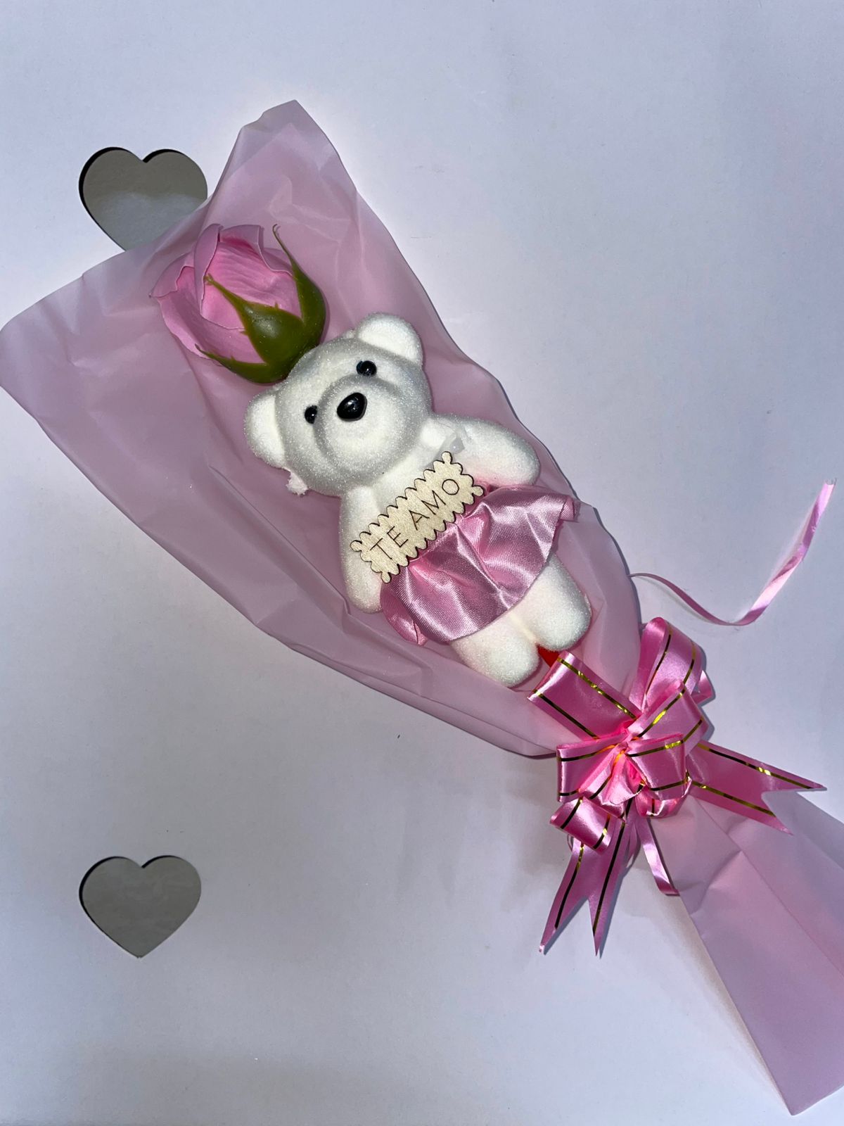 Este lindo ramo pequeño es perfecto para transmitir amor y ternura gracias a su color romántico. Viene acompañado con una bolsita transparente para una presentación elegante. Ideal para regalar en ocasiones especiales.